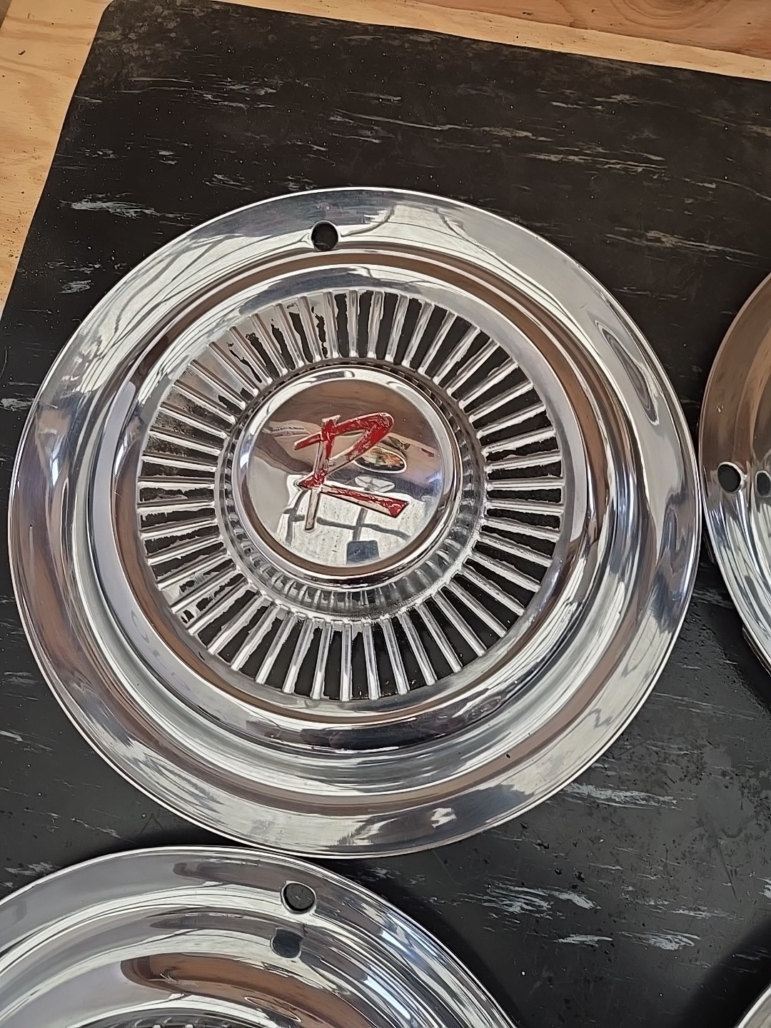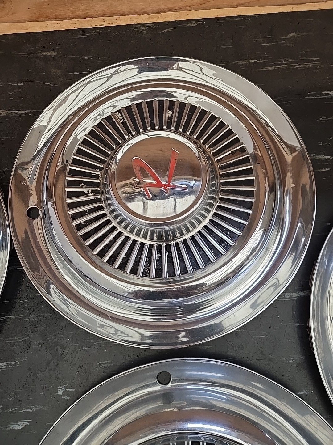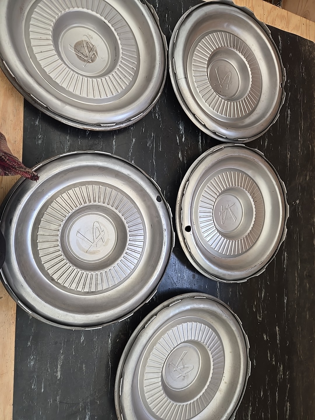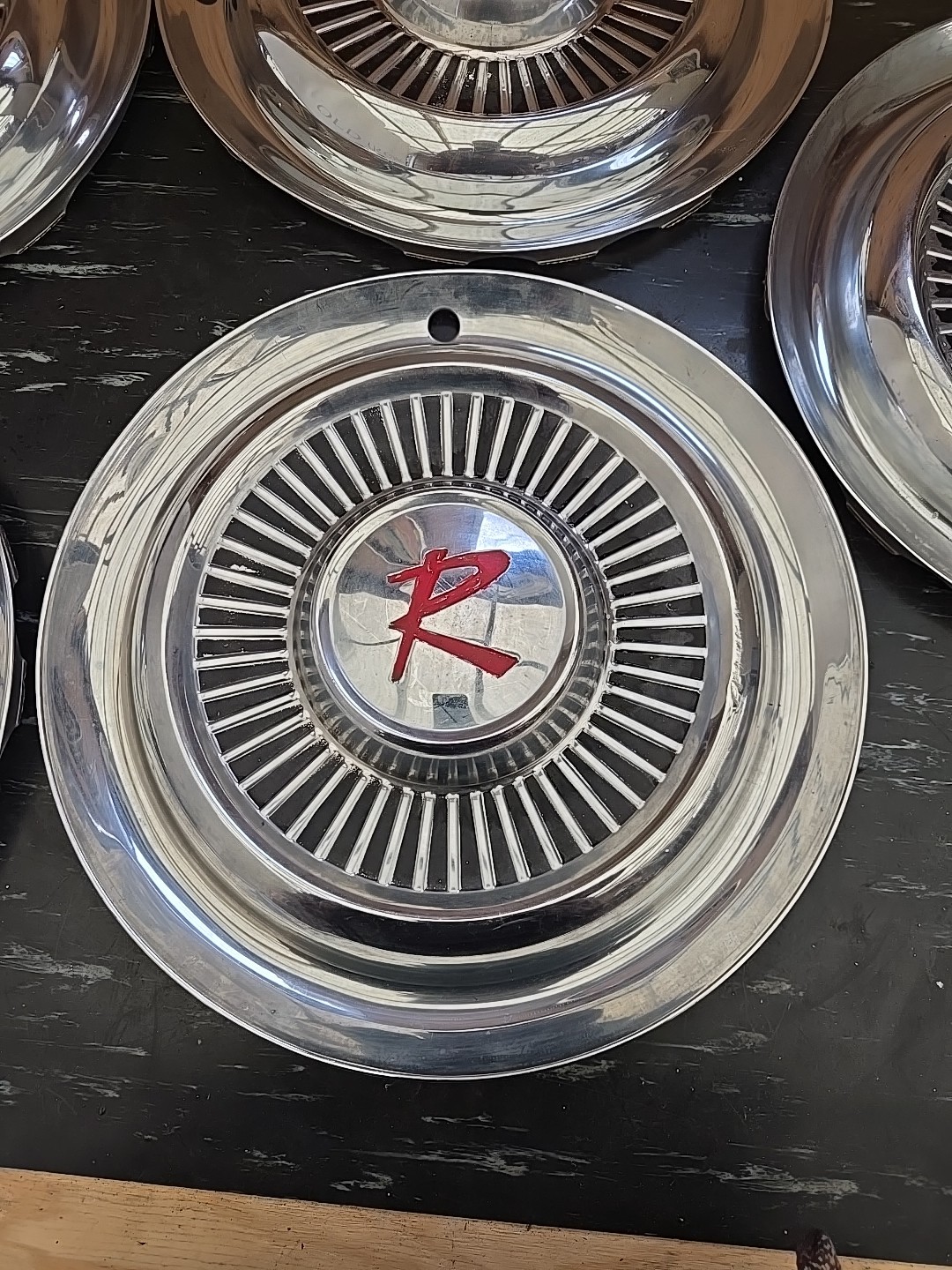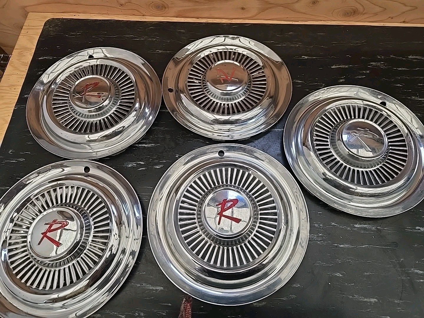 Very clean original set of 5 Rambler 58 to 62 hubcaps. Very minor age patina to paint but super straight and nice. See pics for details. Thanks