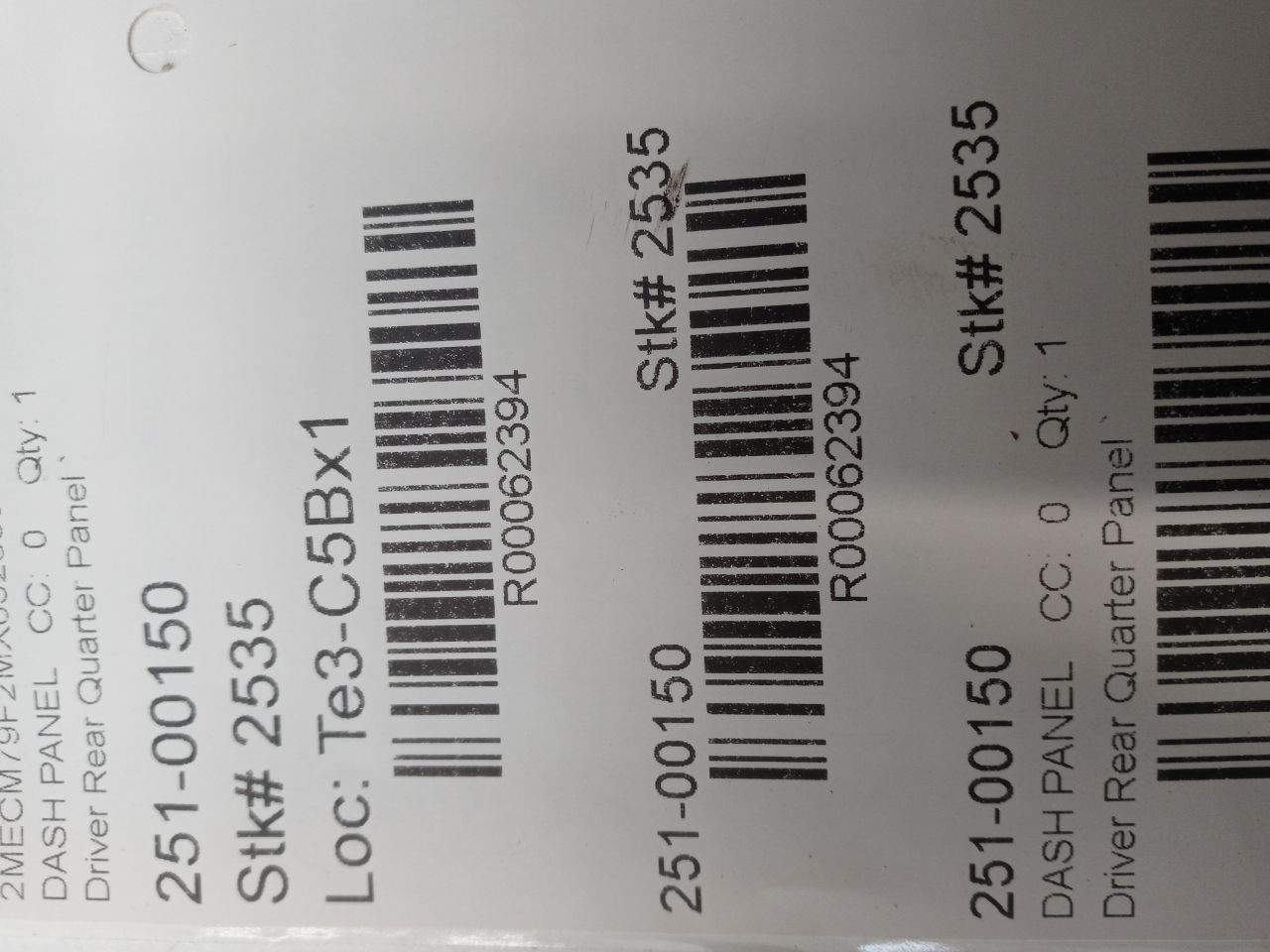 Important Vehicle Attributes: Driver Rear Quarter Panel `