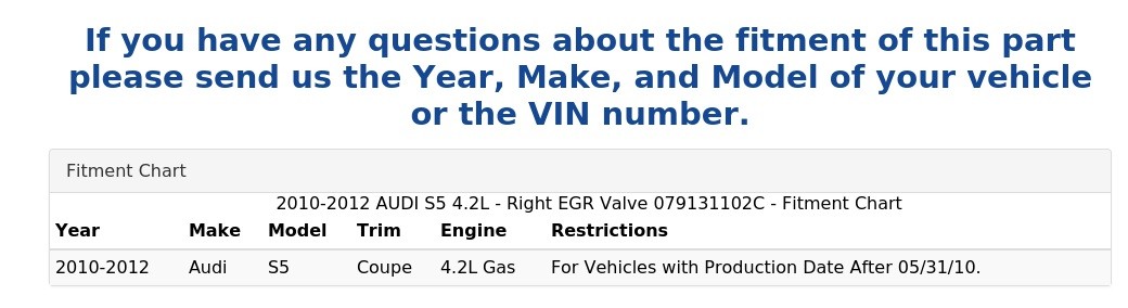Part Number 079131102C, 079 131 102 C, 079 131 102C is a used emissions system part for the Audi S5