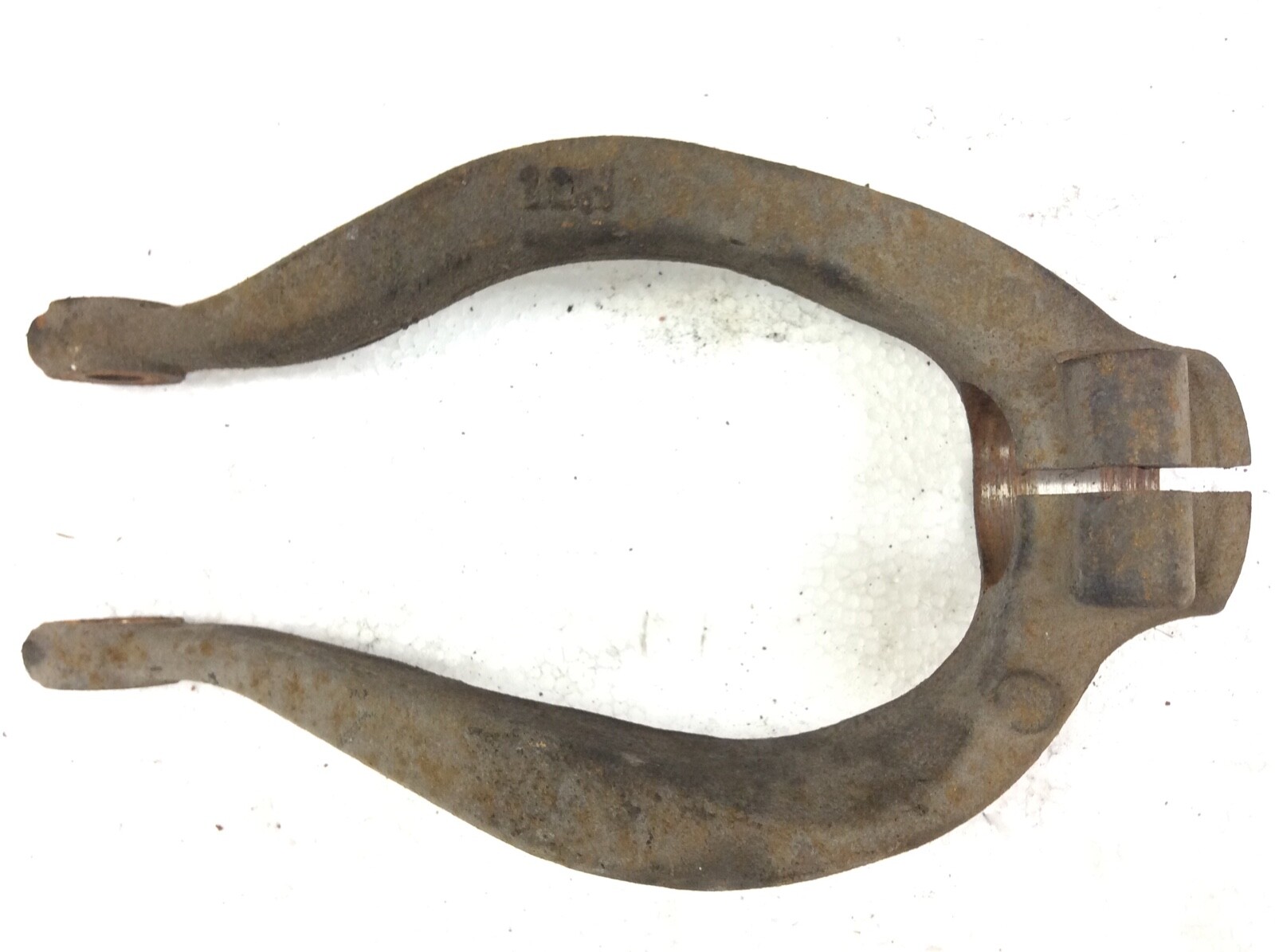 Left, driver side front shock absorber mounting fork, used, OEM.