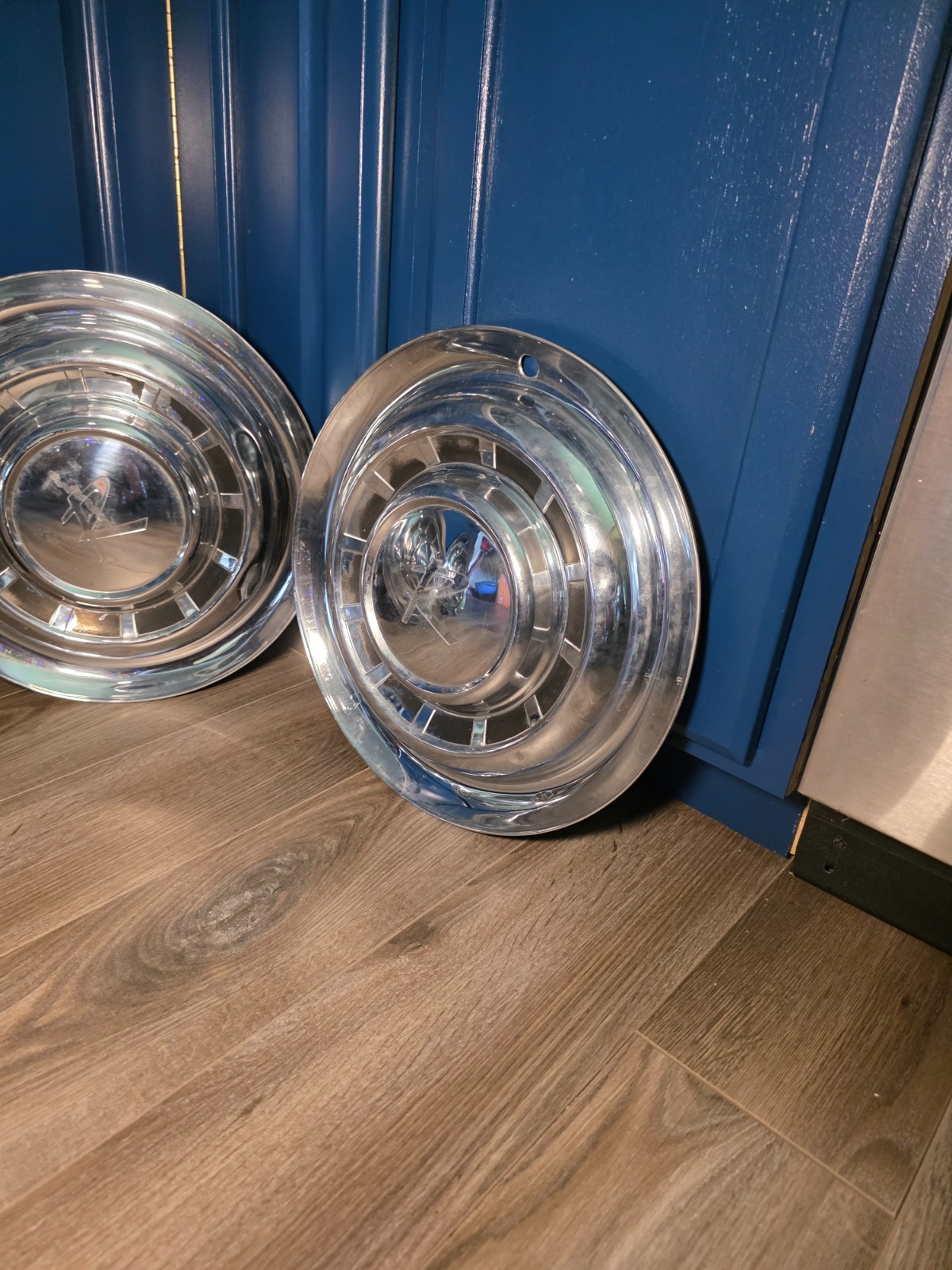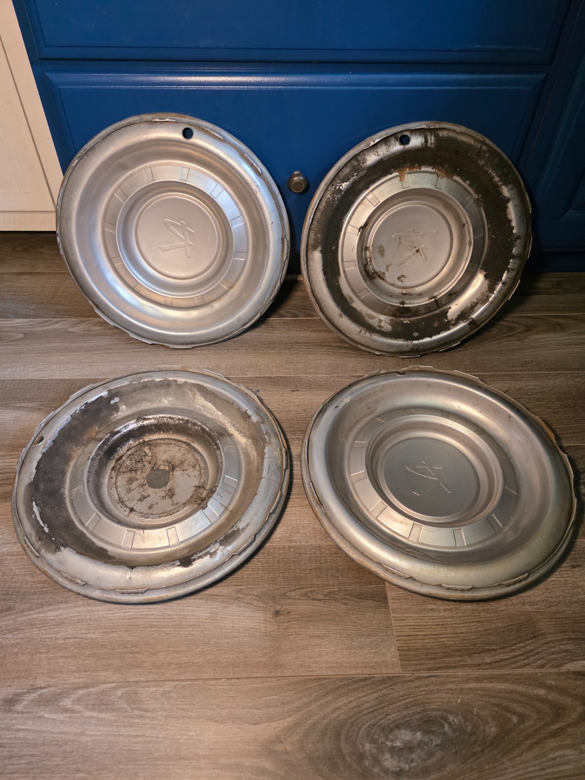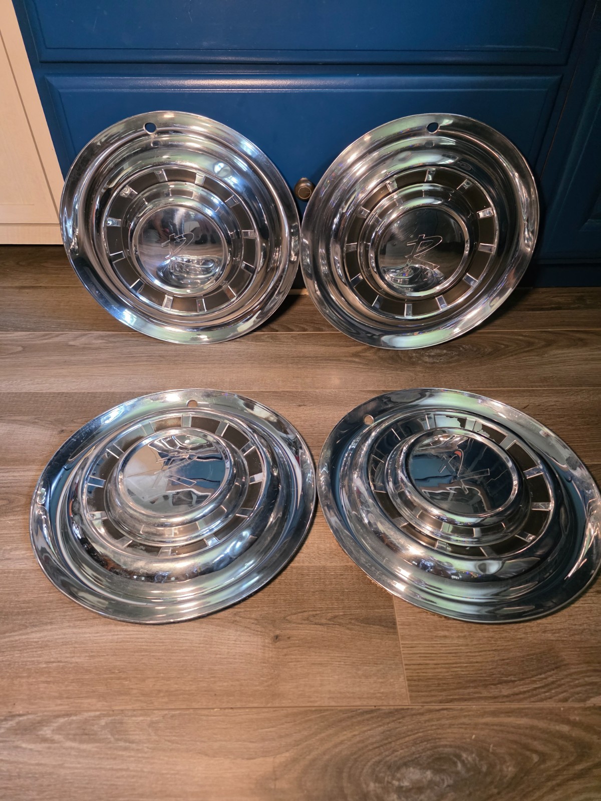 Complete set of four (4) original 15” hubcaps for 1963–1965 Rambler and Nash vehicles. These authentic AMC OEM wheel covers feature the classic brushed stainless steel finish with the raised center and iconic “R” logo or model-specific detailing (varies slightly by year/model). Designed for 15” steel wheels, they are perfect for restoring your vintage Rambler with period-correct style. Great for classic car collectors, restorers, or anyone who appreciates early AMC design. Great for "gear-head" decor!!