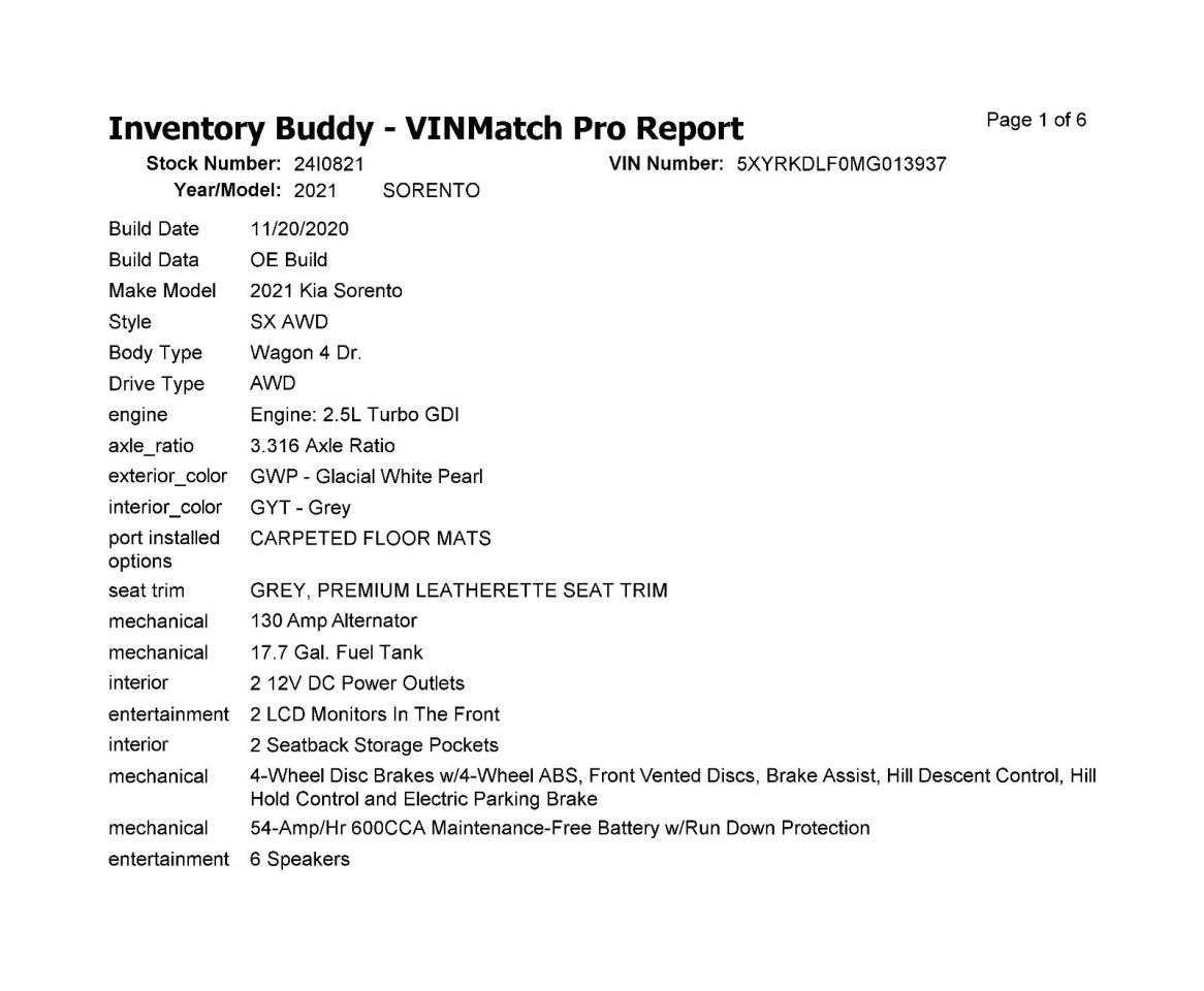 This is a used genuine OEM part with VIN number 5XYRKDLF0MG013937.
