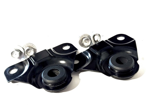 Upper radiator mounting brackets pair with rubber isolators pulled from a well maintained 2002 Nissan Xterra SE v6 3.3L Automatic with 209k miles. Great condition shown in the photos.