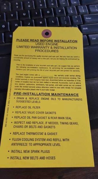 Part/Notes: ENGINE / MOTOR = 167K MILES. Short Block - Saab (4611968) SAAB 900 94 Htbk, 2.0L (4 cylinder, turbo, B204L engine, VIN N, 8th digit) SAAB 900 95-98 2.0L (4 cylinder, turbo, B204L engine, VIN N, 8th digit).
