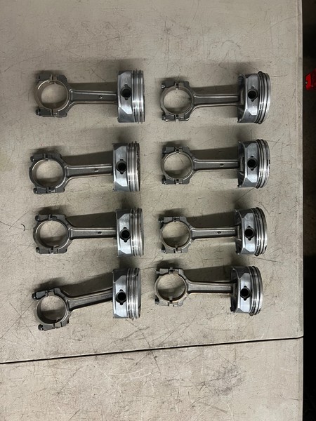 Used OEM pistons and rods from a 2009 CTSV LSA supercharged engine. Taken out to upgrade. The rods are in great shape. The pistons have some small knicks on some of them from moving around in a box. The engine ran fine when removed. Look at pictures to see condition.