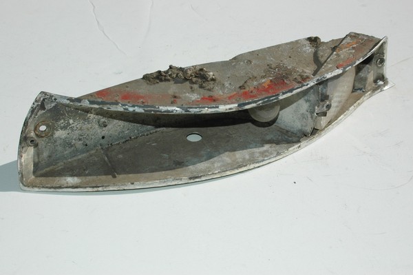 Used, 911 912 front turn signal housing. The top edge is dented down a bit, and on the end, there is corrosion. PORSCHE PARTS.