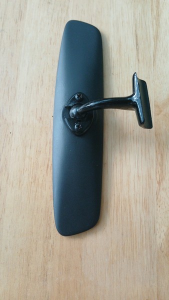 Volvo vintage rear view interior mirror. This item was removed from a 1967 Volvo Amazon but, it will also fit a Volvo PV544 too. This item has been repainted in a flat black enamel and the mount is painted in semi gloss black paint. This item is in good condition. Mirror glass shows wear. Please see all pictures for a good look at contrast and condition. Sold in "as is condition".