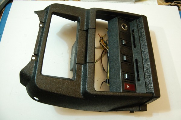 For Volvo 240s: This is an inner black center dash console in excellent condition with all the blower/ heater vent switches, lights, and connectors shown in the pictures. Wires and hoses were cut with plenty of length and include connectors to help you splice/ connect into your existing wiring and vacuum lines.