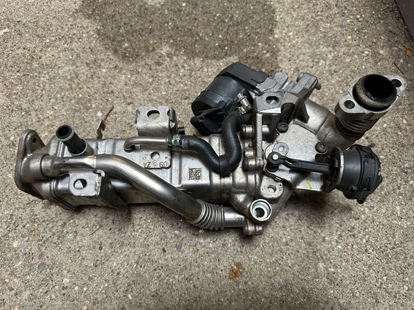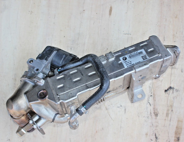 OEM BMW Exhaust Cooler with EGR Valve (11717822350) removed from 2017 BMW F15 35d with the N57 diesel engine. Part Number: 11717822350. Exhaust Gas Cooler High Temp 117010 - BMW (11717822350).