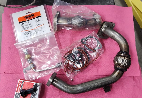 This is all new kit for the EGR. It includes Motorcraft EGR Pressure Sensor, Dorman EGR Pipes with Bolts, Seals, and Gaskets. Dorman Back Pressure Sensor with Tube. These items have never been used or installed. Will fit 2011 to 2016 6.7L Ford Power Stroke Diesel Engines.
