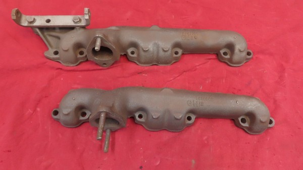 Good used pair of Chevy exhaust manifolds. These are part numbers # 3837069 and #3836968. These are in good condition with no modifications, bad threads, cracks or repairs. These are ready to use or perfect for a easy restoration.