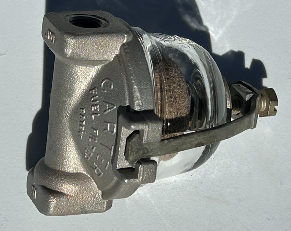 Vintage 1950's Carter Fuel Filter Assembly Glass Bowl 2146397 Pat. # 2703249