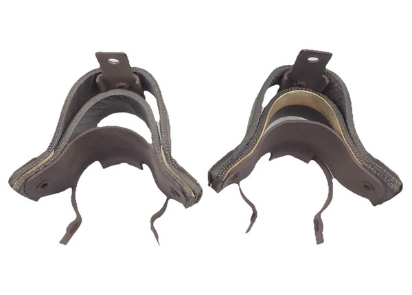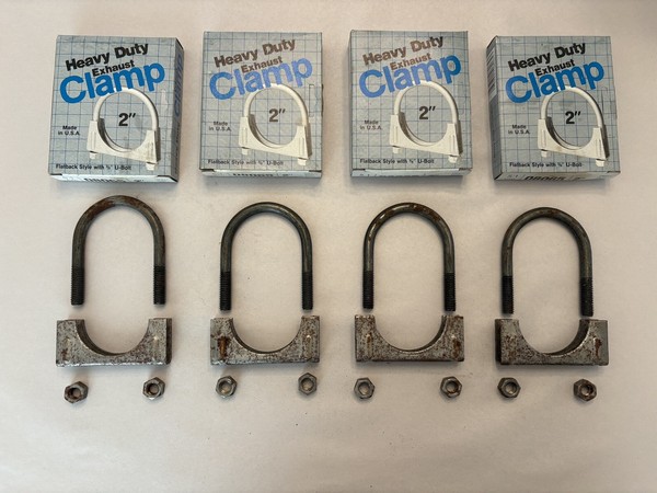 These exhaust hangers are in very good survivor condition as shown. There are no breaks, repairs, or modifications to these parts. They have light surface corrosion as expected. I can't imagine finding a nicer original pair.