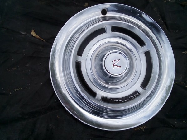 onev used 1960's vintage rambler spinner hubcap. not sure what it exactly fits. its in fair condition. but has scuffs and nicks