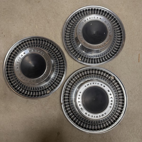 Very nice condition for the age AMC hubcaps set of 3. 14” OUTSIDE TO OUTSIDE.