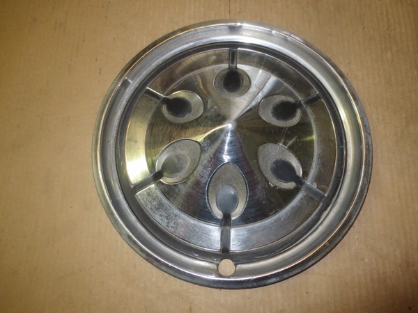 this is for a group of 3 used 10"inch diameter AMC American Motors dog dish style wheel center caps--caps have dings-scratches-some black painted areas thin or missing--decent for the age