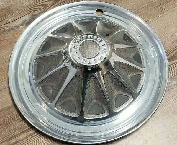 This is a used 14-inch wheel cover from a 1973 AMC Javelin. Please review photos to illustrate dents, dings, scratches, etc. on this vintage part. Whenever possible, I combine items to save you on shipping costs. Shipping is $15 to any of the lower 48-states. Thank you.