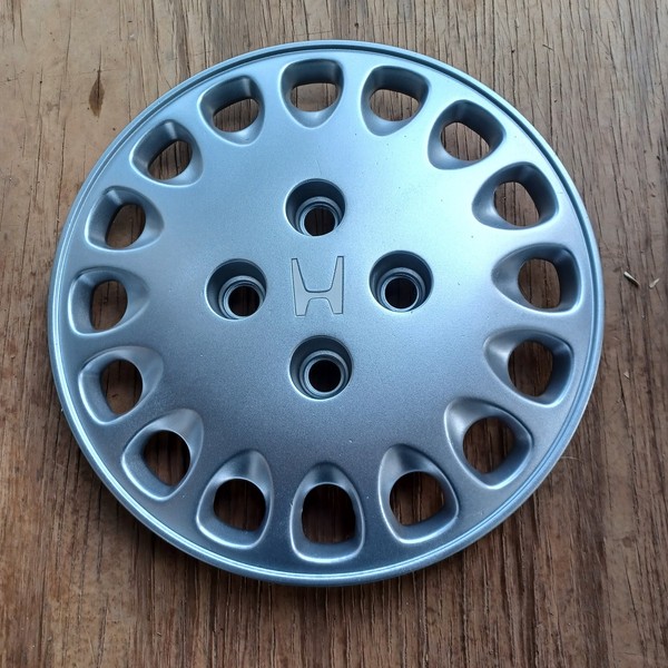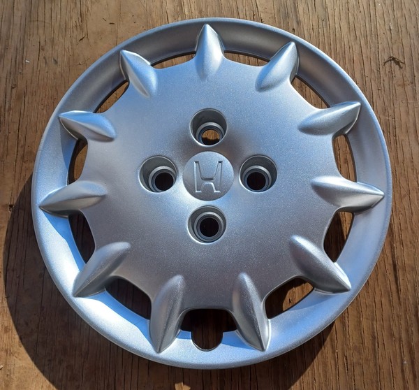 1 factory original Honda wheelcover for -. The price is for each (1) wheelcover. CIVIC 13 (15", 5 spoke), twisted spoke. CIVIC 14-15 15" (5 spoke), twisted spoke. Finish: painted silver plastic. Condition: Like New, professionally repainted/refinished.