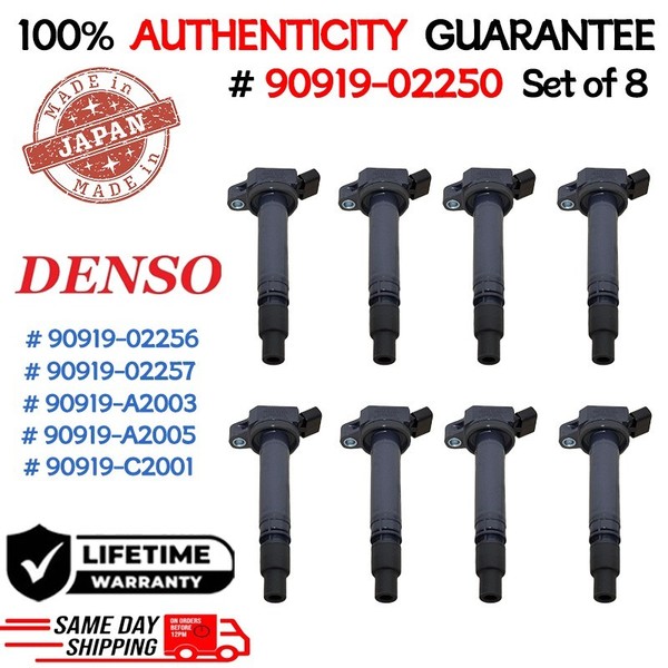 919-A2003, 90919-A2005, 90919-. REMANUFACTURED GENUINE DENSO Set of 8 Ignition Coils For 2005-2022 Lexus ES300h NX300h IS250 GS300 ES350 GS350 GS450h IS300 IS350 RC300 RC350 RX450h GX460 LS460 LS600h LX570, Toyota Avalon Camry RAV4 Highlander Sienna Venza 4Runner FJ Cruiser Tundra Sequoia Land Cruiser RAV4 Electric, Scion tC, 2.5L I4, 2.7L I4, 3.0L V6, 3.3L V6, 4.0L V6, 4.6L V8, 4.7L V8, 5.0L V8, 5.7L V8.