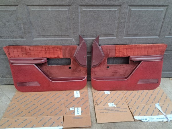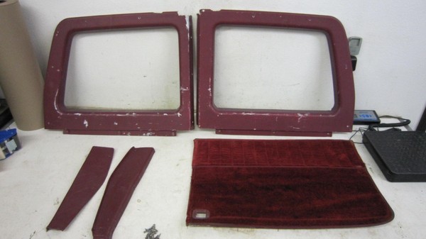 73-91 chevy gmc barn door panels from a 1991 chevy suburban red color most of the screws are there as well. these are 34yrs old. see pics the one side cover is pretty busted up. and only have the lower carpet for the lh drivers door as pictured only have what is shown.