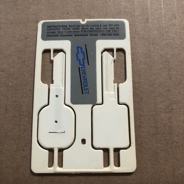Chevy Emergency Credit Card Key 8004 Vintage