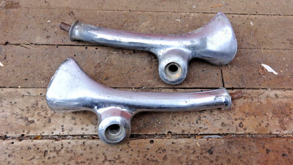 This is an original pair of 1934-35 Chevy STANDARD Headlight Stands.