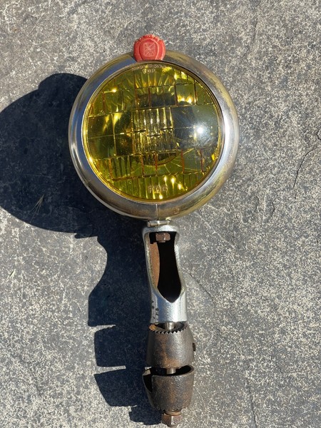 I believe these would be from around 1940's - QTY 1 S & M fog lamp with stand. Great shape no dents has fading on the plating. Light was tested and it works. Glass is nice with a few minor scuffs and imperfections.