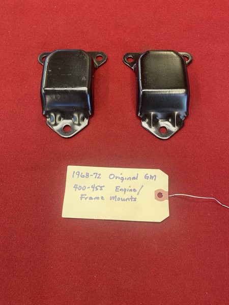 This is a nicely restored set of 1968-1972 original GM Oldsmobile 400, 425, and 455 engine to frame mounts. These would be correct for any Oldsmobile model with a big block engine. Mounts were bead blasted front and back to bare metal and were coated in Eastwood's Chassis Black. Mounts are in nice condition and do not show extreme wear.