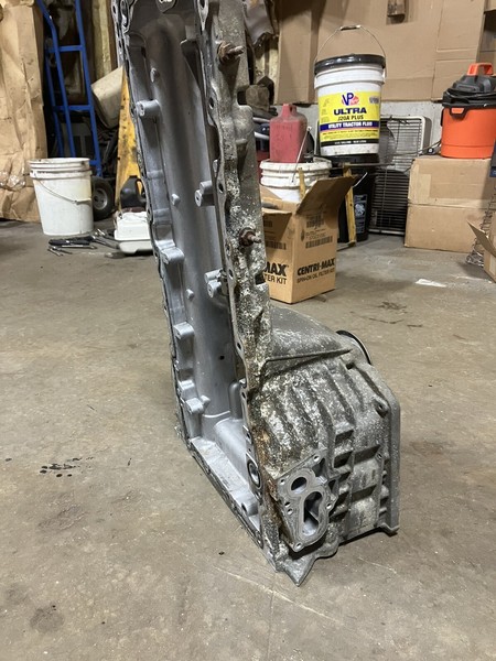 6.7 upper oil panNo cracks in it was hot tanked before it was put on the shelf but should be cleaned before use. Comes with Windage tray, and pickup screen.