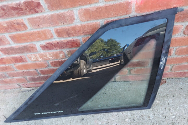 A used quarter glass out of a 1987-1993 Ford Mustang Hatchback. This is for the passenger RH side. The rubber and glass is in used condition for its age. The rubber is sun baked so it is useable but rough.