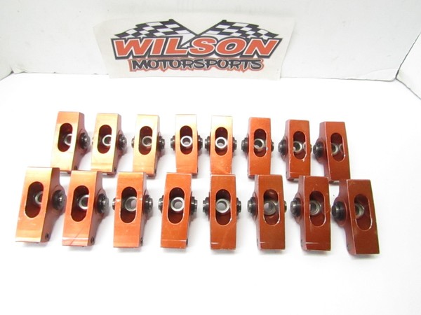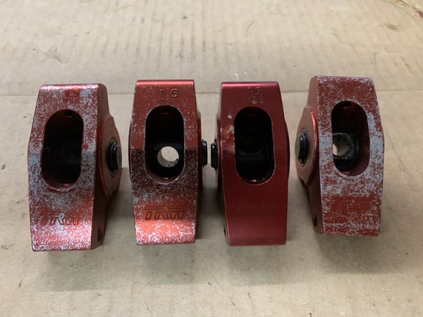 Here is a used set of 16 Harland Sharp aluminum roller rockers for the Sb Chevy engines. They are 1.50 ratio and 3/8" stud.