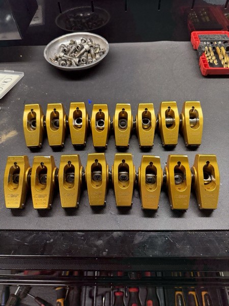 Set of 8 rockers professionally machined for clearance with large valve springs. These are like new.