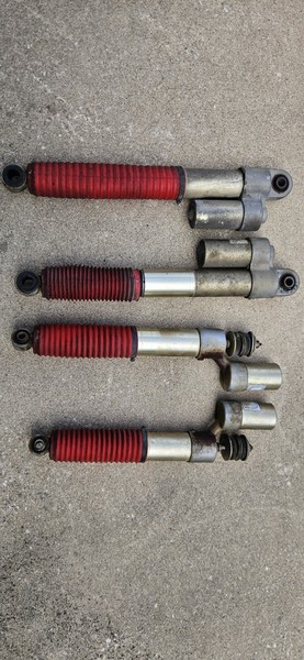 This is for a set of 4 OEM shocks, removed from a 43k mile 2001 Vehicross. No obvious leaks, only minor surface corrosion see photos. Missing one ring clamp Shocks compress with considerable effort and rebound slowly. I have a full 43k mile VX to part out, lmk if you need anything else.