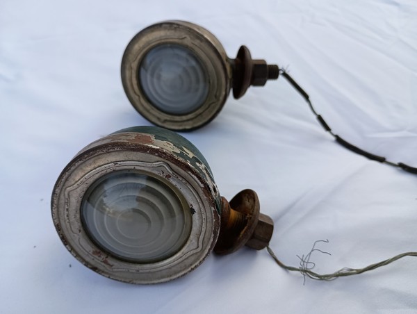 The product is a set of two vintage cowl lights which may have been used for Chevrolet, Pontiac, and Buick vehicles in the early decades of the 1900's. These side marker light assemblies are a nostalgic and authentic addition to classic car enthusiasts' collections. Functionality untested.
