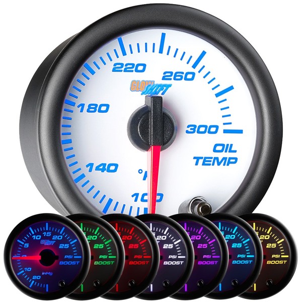GlowShifts White 7 Color Series Oil Temperature Gauge allow you to monitor your engines oil temperature, ensuring your motor oil does not break down prematurely causing harmful wear and tear to your vital engine parts.