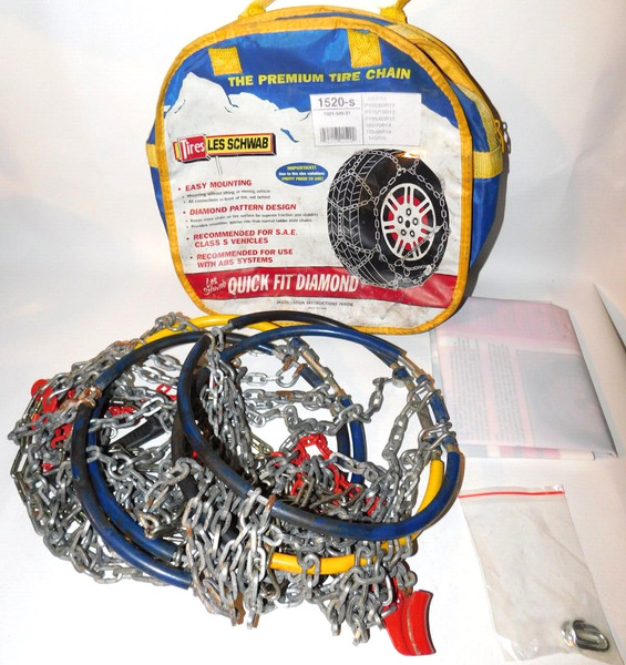 1520 Les Schwab Quick Fit Diamond Pattern Tire Chains, 1 Pair - Used