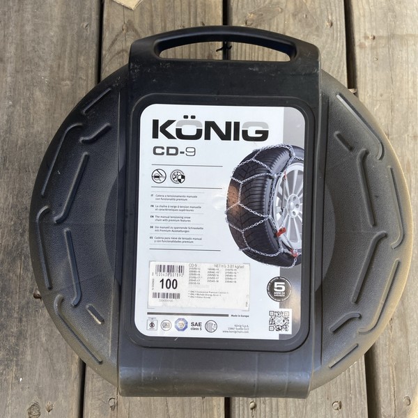 The Thule KÖNIG Easy-FIT CU-9 100 Snow Chains are a set of 2 tire chains designed by the brand Konig. These chains are specifically designed for winter driving conditions, providing traction and stability on snow-covered roads. The Easy-FIT technology ensures quick and easy installation, making it convenient for drivers to equip their vehicle with these chains during winter weather events. With the trusted Konig brand and high-quality construction, these snow chains are a reliable and essential accessory for vehicles navigating icy and snowy terrain. Comes as a pair , see photos