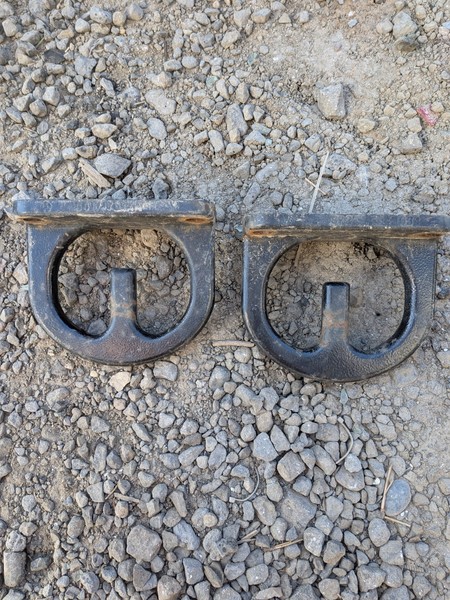 Good pair of front tow hooks pulled from a 2003 Ram 2500 Cummins diesel truck. Pulled from a rust free Texas truck, rust showing is just surface. In good overall condition but shows signs of wear consistent with age.