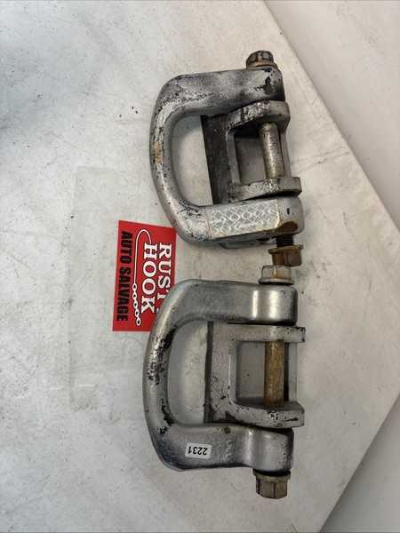 USED pair of silver tow hooks specifically designed for the 2006 Hummer H3. These tow hooks are essential for safely towing a trailer or other vehicles, providing a secure and sturdy attachment point. The high-quality construction and iconic Hummer branding ensure durability and reliability during tow operations.