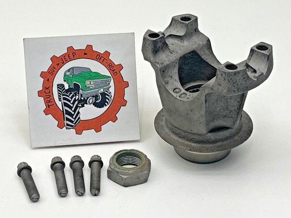 This yoke includes the correct factory bolts to attach your CV front drive shaft. This yoke is NOT for the common single joint drive shaft. Includes a used yoke nut. All parts are sold AS-IS, with NO warranty.