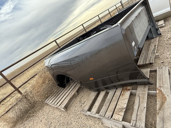 The product is a 2018 Dodge Ram 3500 truck bed dually DRW with an 8' bare box . It is a Silver-colored exterior part designed specifically for the Dodge 3500 Pickup model.This truck bed is built for the rear placement on the vehicle and includes features such as a dual rear wheel setup, making it a reliable and durable option for those in need of a high-quality truck bed and 5th wheel package.