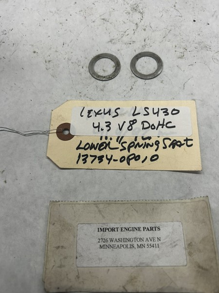 LOWER VALVE SPRING SEAT USED FITS LEXUS GS430/LS430 4293cc 3UZFE DOHC 32V 2001-2003 13734-0P010 USED . ALSO FITS LEXUS GS300 4293cc DOHC 3UZFE 1998-2000. ALSO FITS LEXUS GS400 DOHC 1998-2000 USED SOLD AS EACH.