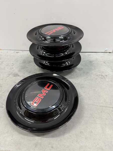 4 Black Floating Center Caps For GMC XL Hubcap Rim Emblem 7.2 In 182 mm
