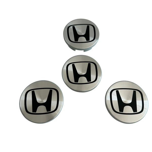 Honda Wheel Center Silver Chrome Caps Black Logo Hubcaps 2.25 inch (Set of 4x)