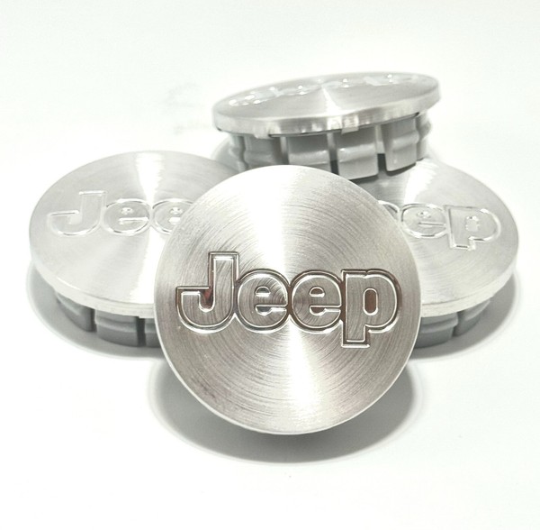 JEEP SET OF 4 BRUSHED SILVER 55mm/2.16in Wheel Center Caps LIBERTY GRAND CHEROKE